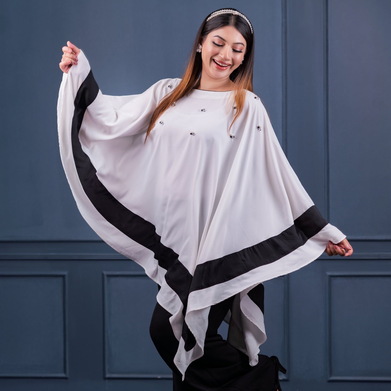 Embrace effortless elegance with this chic monochrome cape set.